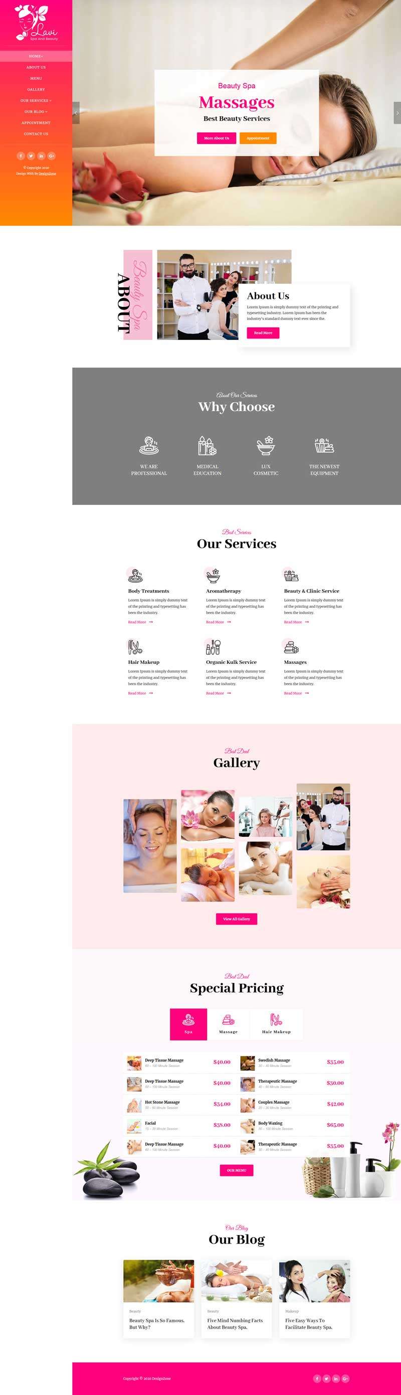 女士Spa美容沙龙服务官网HTML静态模板,侧栏导航设计,风格大气,包含整个网站html文件。