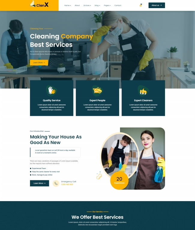 Bootstrap响应式清洁服务公司宣传网站模板,家政服务公司通用网页模板下载。