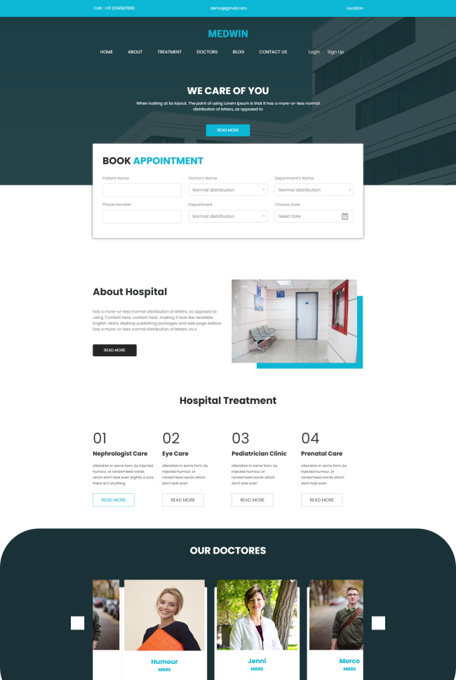 医院医疗服务机构宣传网站html5模板,适用于各类医院、诊所、医疗保健机构等的宣传网站,能够帮助医疗机构更好地展示自身形象、服务内容和专业团队,吸引患者和潜在客户。模板有以下特点: