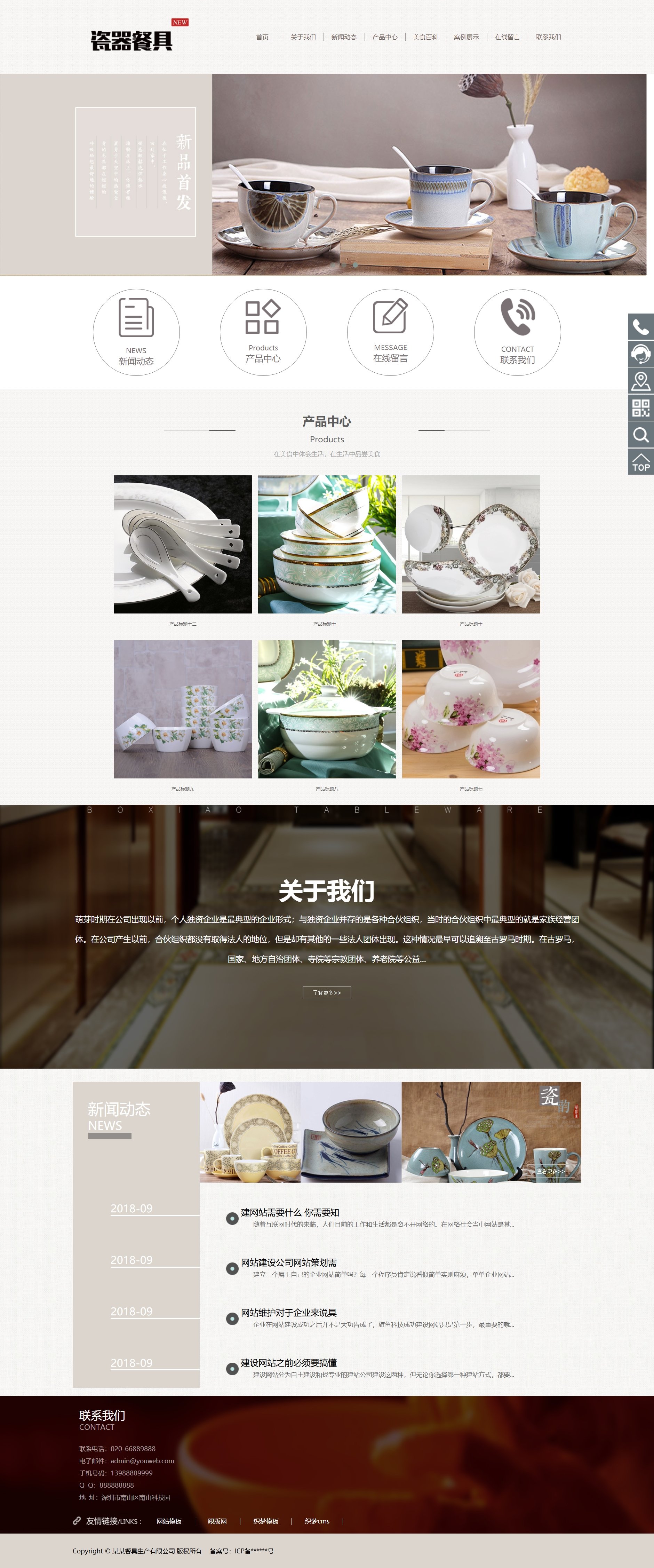1、瓷器餐具生产销售公司网站模板,采用响应式自适应设计,高端实用。