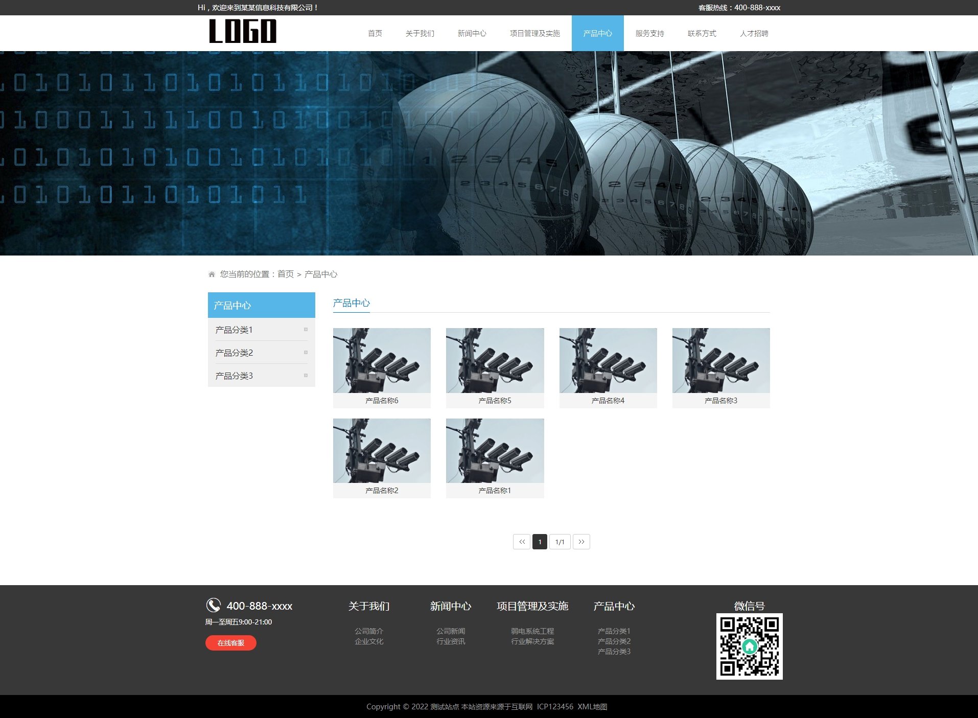 响应式电子科技安全监控设备公司pbootcms模板,蓝色风格比较简洁实用,采用响应式自适应设计,可在手机端适配。这套网站模板可以作为电子科技安全监控设备公司、智能科技安防设备销售公司网站使用,源码带测试数据,安装非常方便,很适合各位需要建此类型网站的朋友使用。数据库采用sqlite链接方式,将源码上传到网站空间,然后确定自己用的web容器是iis,apache还是nginx导入相应的伪静态规则即可,非常的方便。