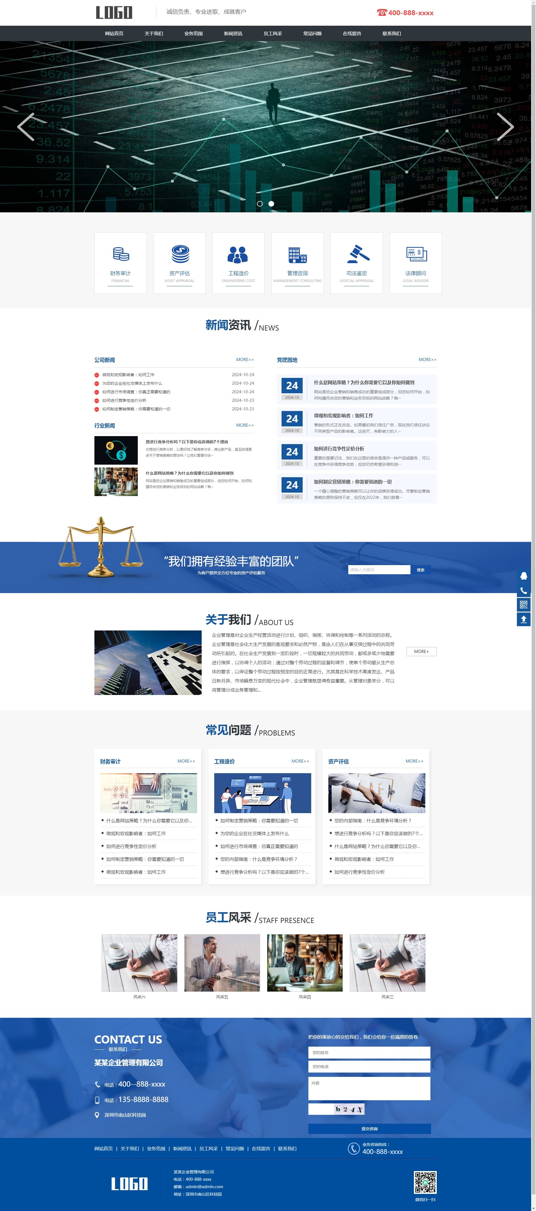 工程造价财务审计企业管理网站模板,蓝色风格,整体界面设计大气实用。这是一套PC+WAP手机端适配的网站源码,可以作为工程造价财务审计企业管理、企业管理咨询服务公司网站使用。源码自带测试数据,安装非常方便,很适合各位需要建此类型网站的朋友使用。数据库采用sqlite链接方式,将源码上传到网站空间,然后确定自己用的web容器是iis,apache还是nginx导入相应的伪静态规则即可,非常的方便。