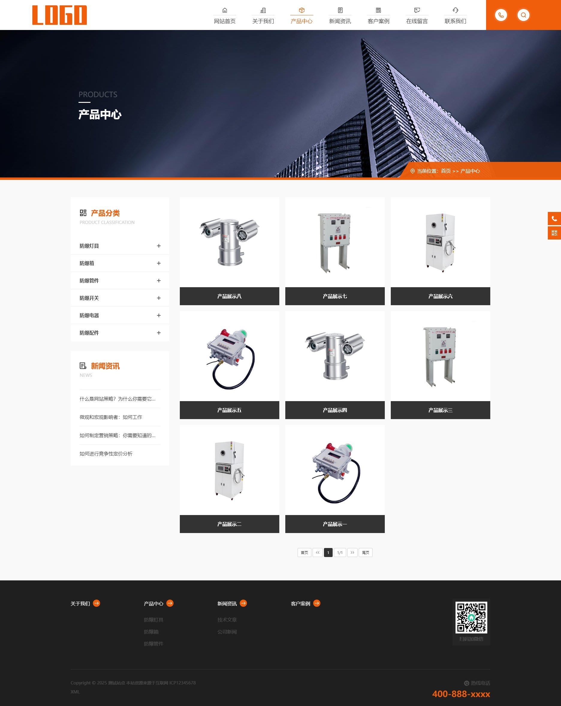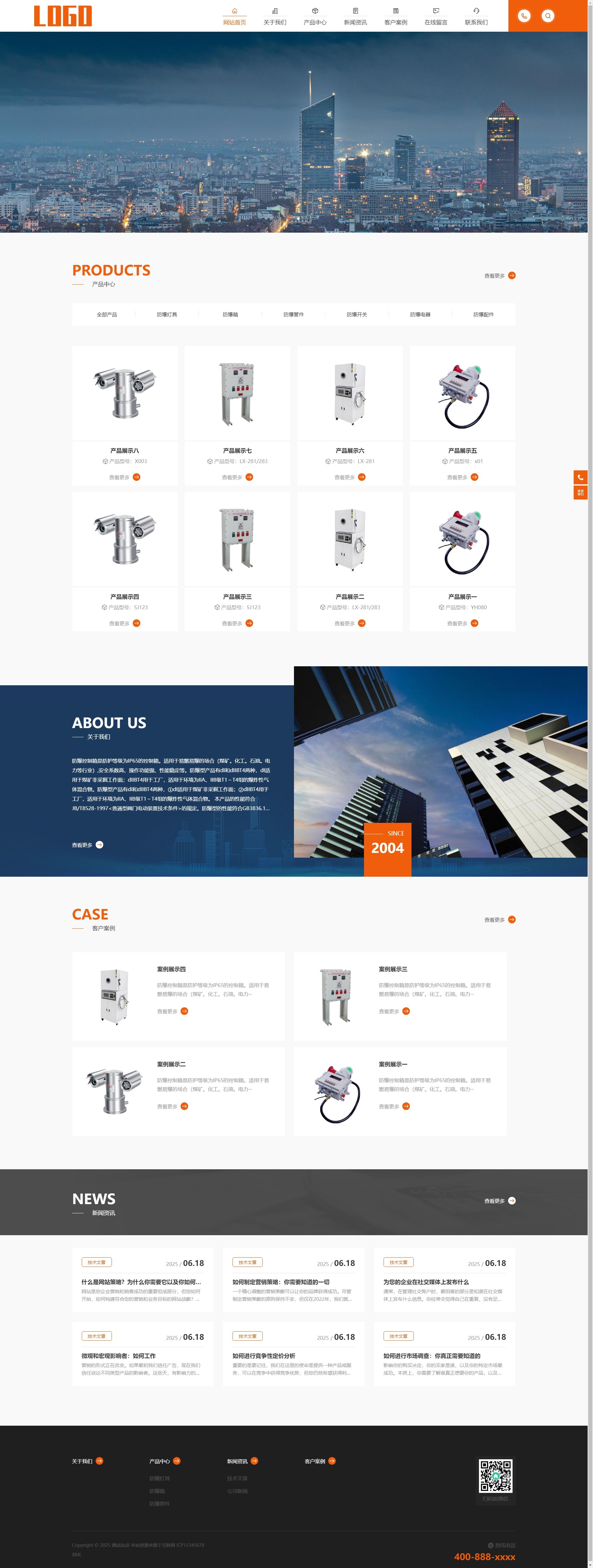 该模板采用了简洁大气的设计风格,以深色调为主,搭配金属质感元素,充分展现了防爆设备控制箱的专业与可靠。页面布局合理,重点突出产品展示与企业优势,让访客在第一时间就能感受到企业的专业形象。2. 自适应手机端,提升用户体验