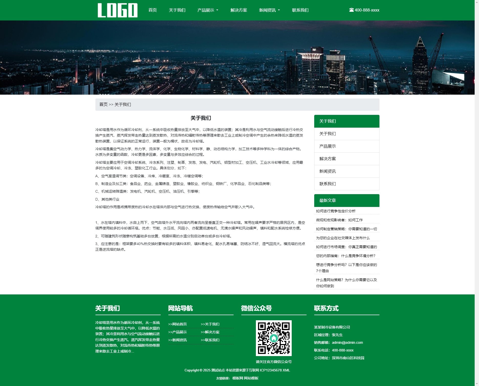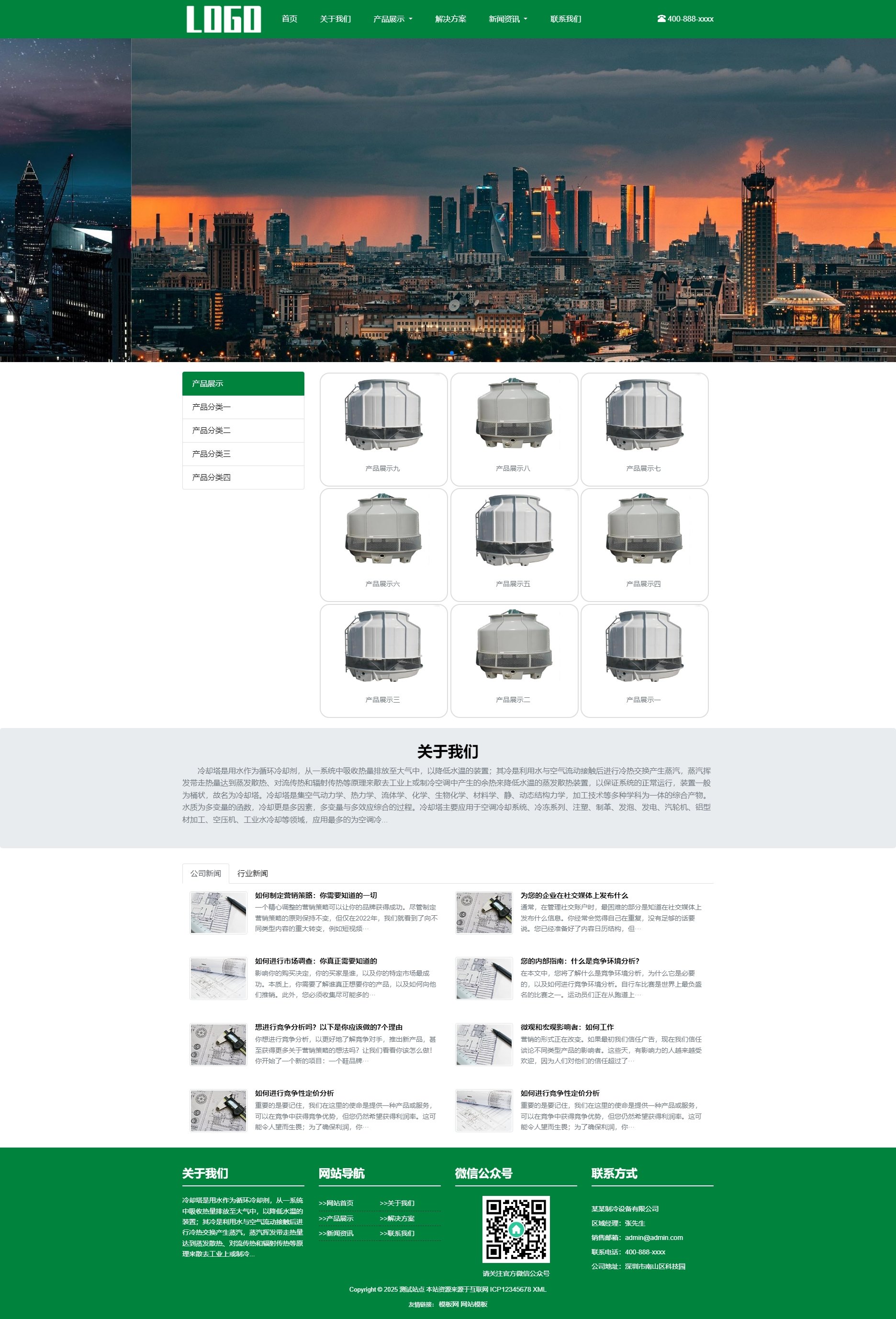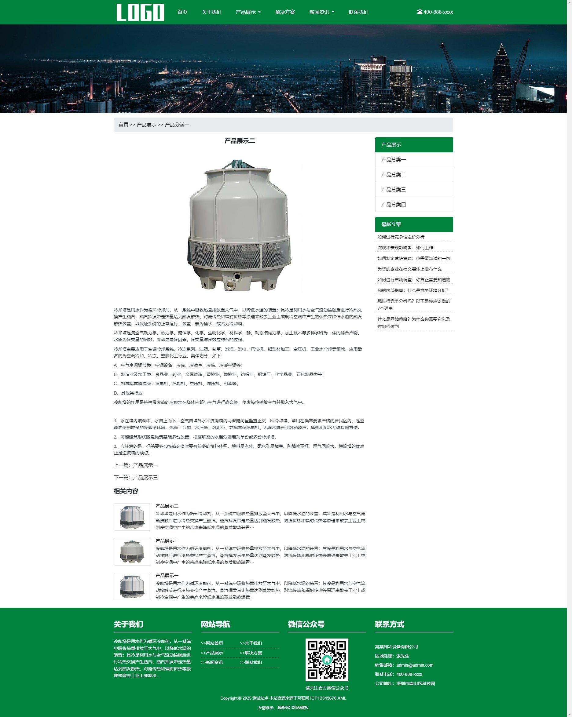 模板整体布局简洁大方,以突出制冷冷却塔设备的专业性为核心。首页精心设计了产品轮播图、新闻资讯展示、客户案例精选等模块,让用户在进入网站的第一时间就能快速了解企业的核心产品和服务优势。同时,各个页面的排版合理,信息层次分明,便于用户查找和阅读。3. 功能丰富