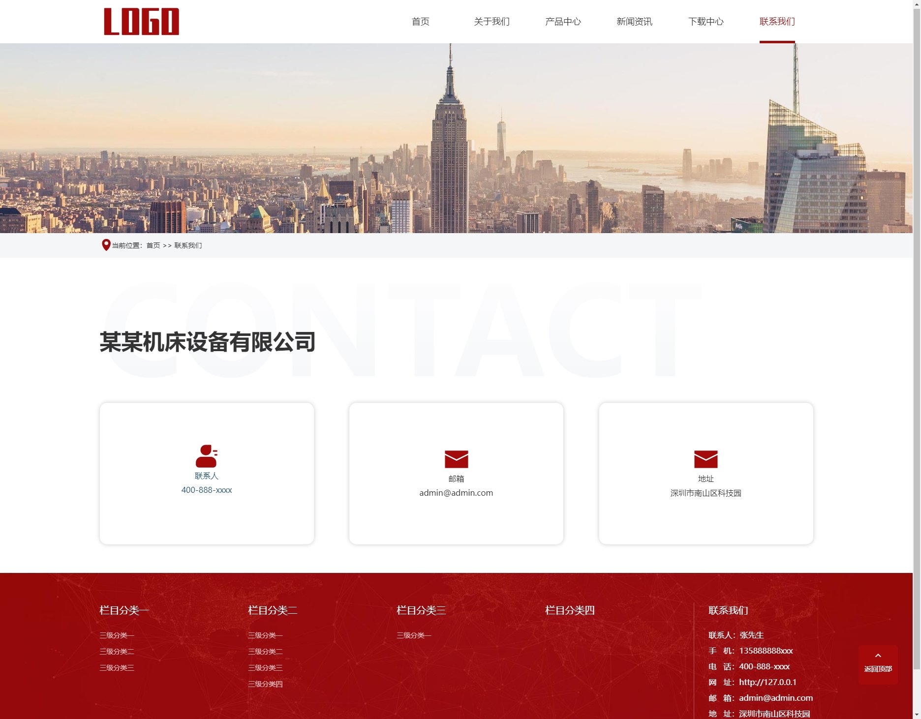 - 后台管理便捷:后台地址为域名/admin.php,账号为admin,密码为admin。后台可直接修改联系方式、传真、邮箱和地址等信息,操作方便。