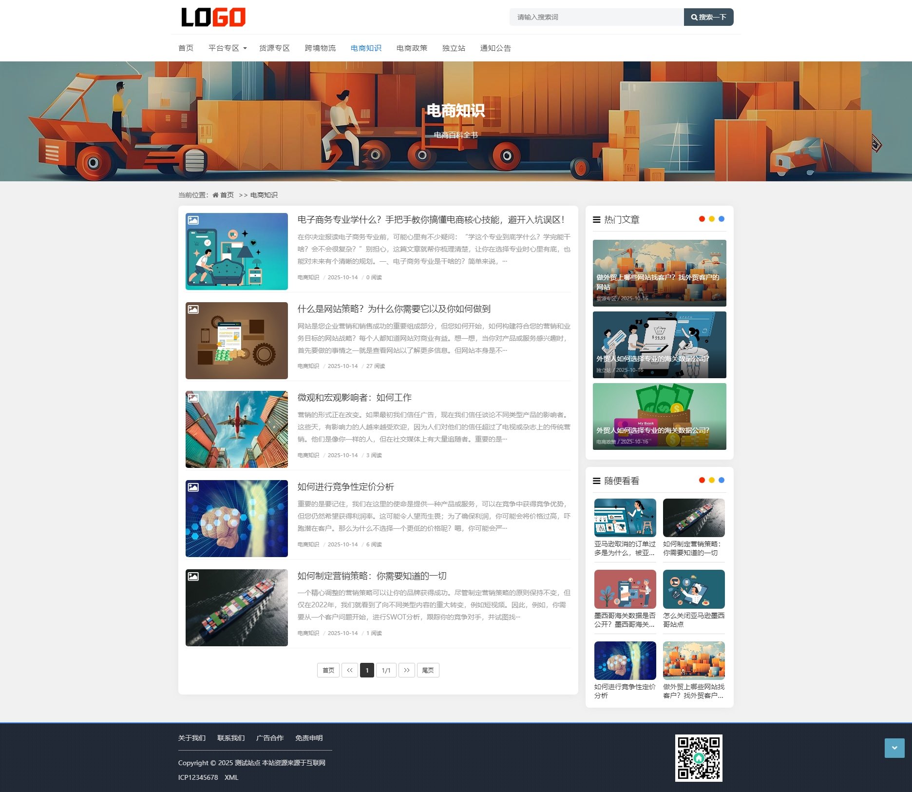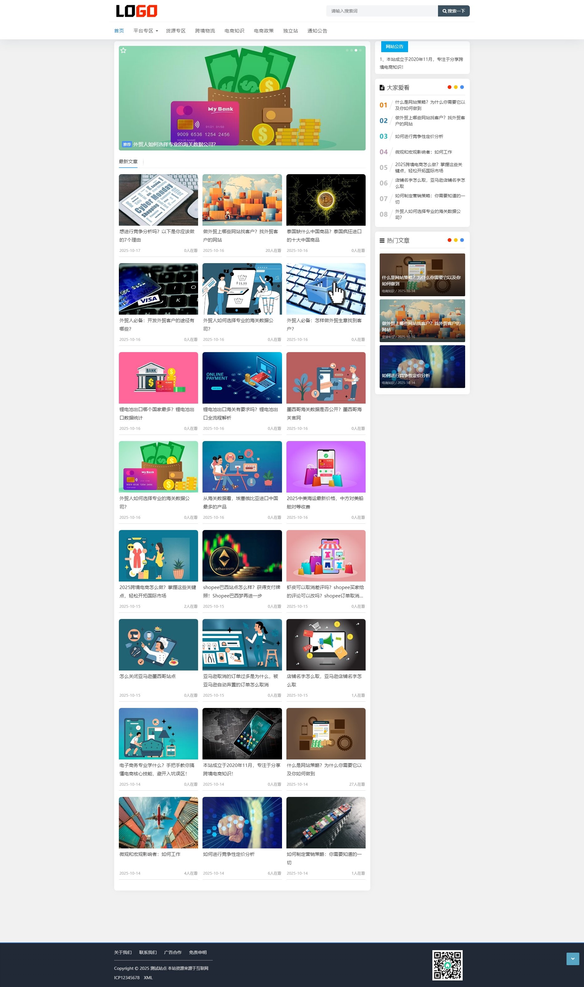 - 栏目设定:网站预设跨境物流、电商知识、电商政策等栏目和功能,可展示需要的新闻资讯。